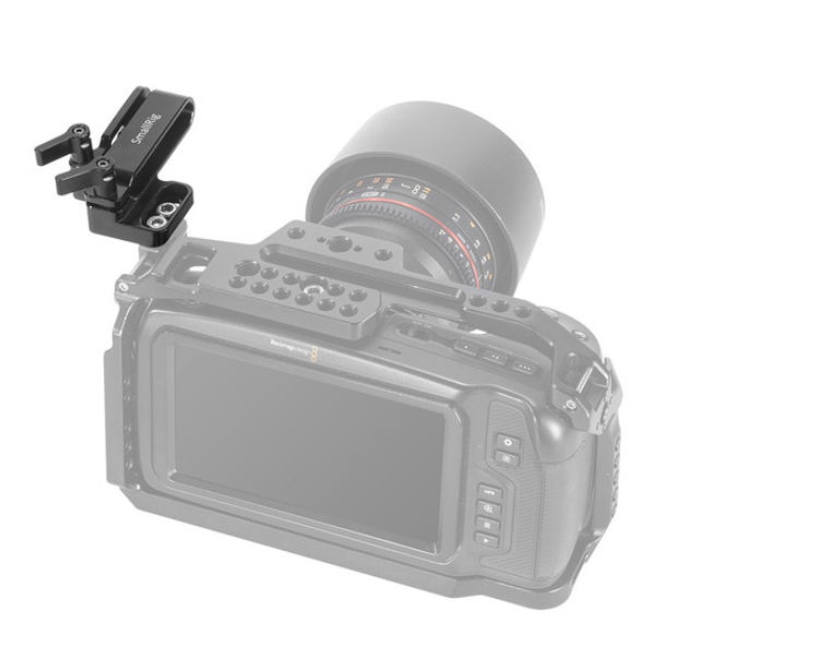 Alguns equipamentos compatíveis são BMPCC 4k/ 6k/ 6kPro, Ursa MIni Pro 46k entre outras. A conexão é feita através de dois parafusos padrão 1/4 de polegada (incluídos).