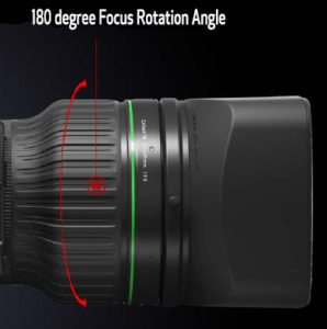 Um ângulo de rotação de 180 graus (em comparação com o ângulo de rotação de 110 graus de nossas lentes HJ40x) facilita o controle rígido para câmeras 4K UHD, ajudando a melhorar a operação de foco, mesmo em distâncias focais longas, onde o foco pode ser difícil.