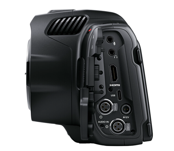 A câmera Pocket Cinema Camera 6K G2 usa um sensor de tamanho Super35, 13 stops de range dinâmico e um ISO nativo duplo 400/3200 até 25.600 para capturar imagens de até 6144 x 3456 até 60 fps