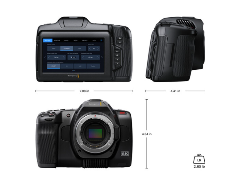 .Os recursos herdados do 6K Pro incluem um LCD de tela sensível ao toque inclinável de 5″, opções Pro EVF e alça de bateria, duas entradas de áudio mini-XLR, um slot de bateria NP-F570 série L (padrão Sony) e a ciência de cores Gen 5 atualizada, com Filtros ND e reduzindo o brilho do LCD de 1500cd/m² do 6K Pro.