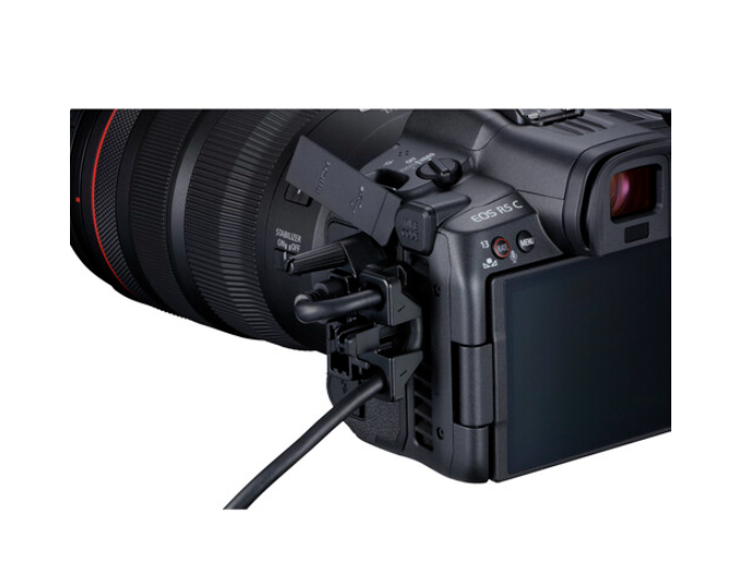 A câmera EOS R5 C suporta saída RAW via HDMI e gravação ProRes RAW com gravadores externos compatíveis.
