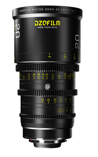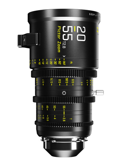 A DZO Pictor 20 a 55mm T2.8 Super35 apresenta uma abertura máxima de T2.8 com uma faixa de abertura até T22. Como seria de esperar de um zoom estilo cinema, mantém o foco em toda a faixa de zoom.