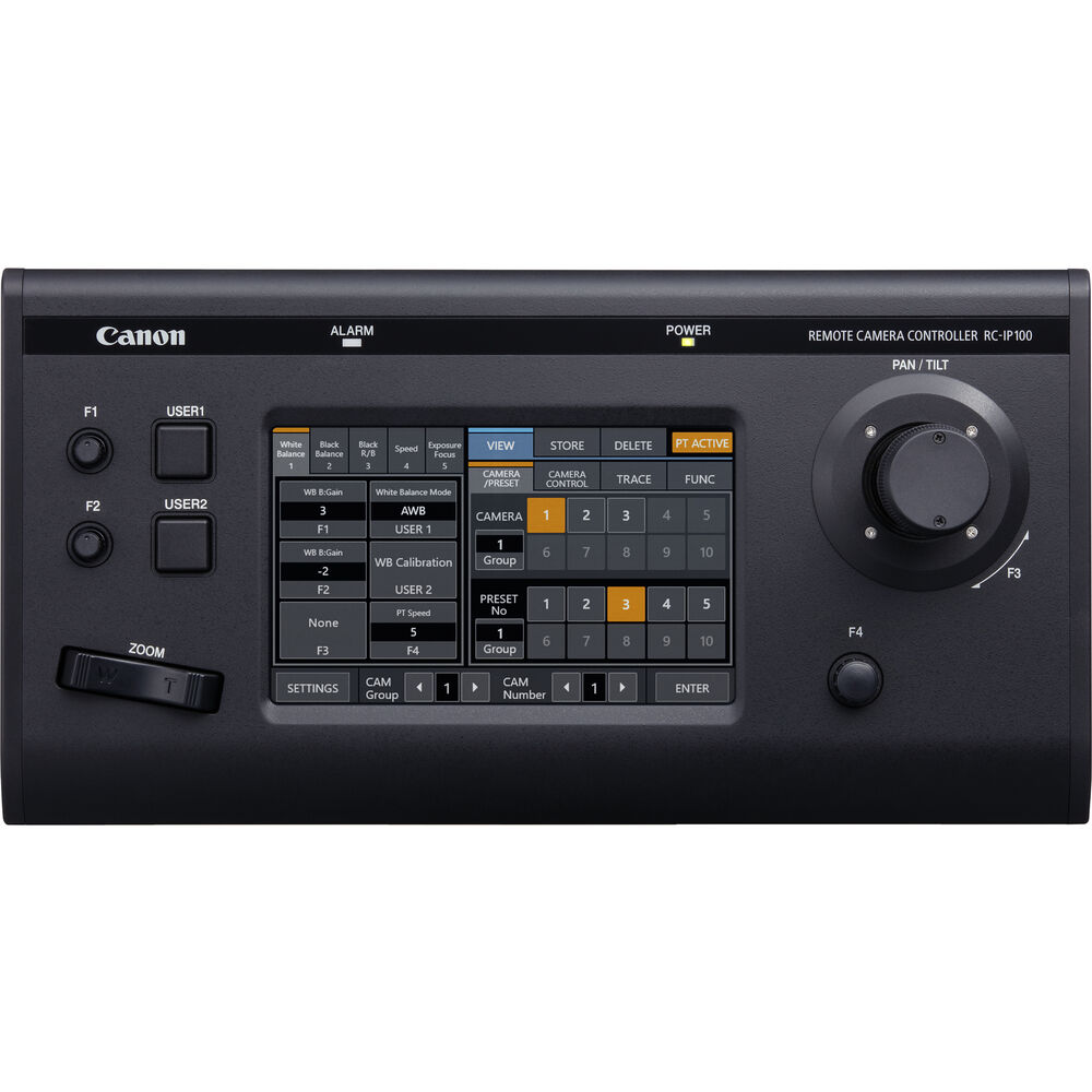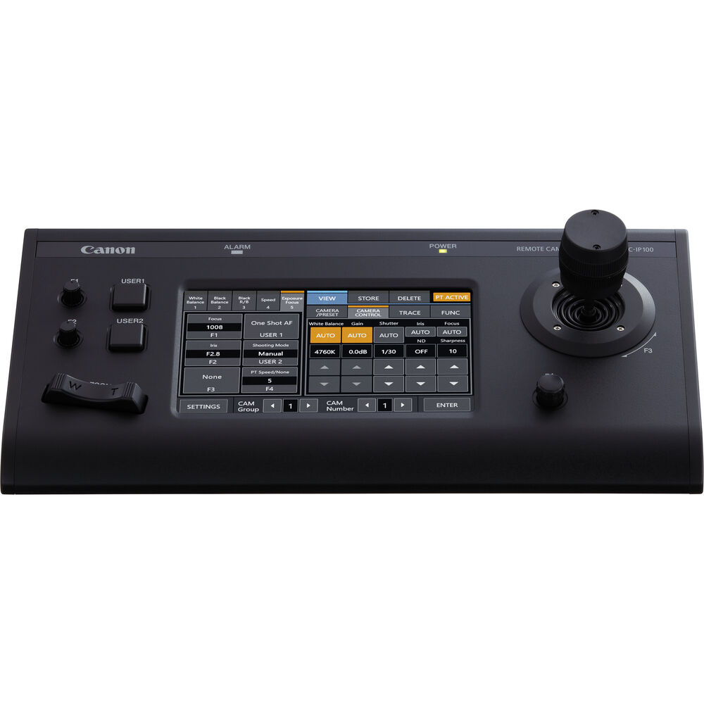 Controle suas câmeras PTZ da Canon usando controle IP ou serial com controles de precisão e uma tela sensível ao toque com o controlador de joystick PTZ com tela Touchscreen RC-IP100 da Canon. O controlador é compatível com as câmeras Canon CR-N300 e CR-N500 PTZ e permite que um único operador controle até 100 câmeras de um local remoto. A tela de toque de 7 “fornece configuração e controle de configurações da câmera.